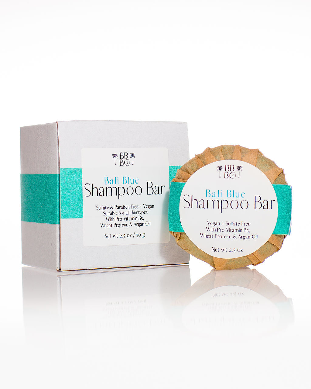 Our shampoo bars are loaded with goodies for your hair! Panthenol (vitamin B-5) adds shine and moisturizes, argan oil hydrates and softens, and wheat protein repairs and adds volume. These bars may look small, but they actually replace 2 full-sized shampoo bottles, lasting about 50 washes. This is great for the environment and convenient for travel! To use, wet hair really well and rub the bar over your scalp and hair until a lather forms. Work lather through to the ends of hair. Our shampoo bars are: *sulfate free, meaning they won't strip your hair of natural oils and sebum *100% Vegan *contain luxury ingredients such as argan oil, wheat protein, panthenol, & aloe vera extract The Scent: Bali Blue is a fresh and fruity fragrance with notes of pineapple, bergamot, coconut, melon, lemon, and musk. Net Wt 2.5 oz