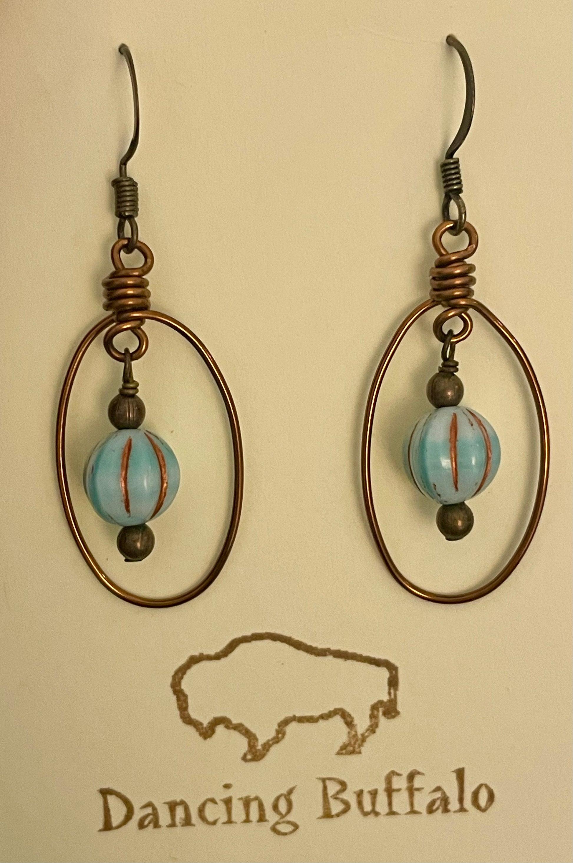 These handcrafted earrings feature Czech glass beads and antique brass findings. All materials are nickel free.