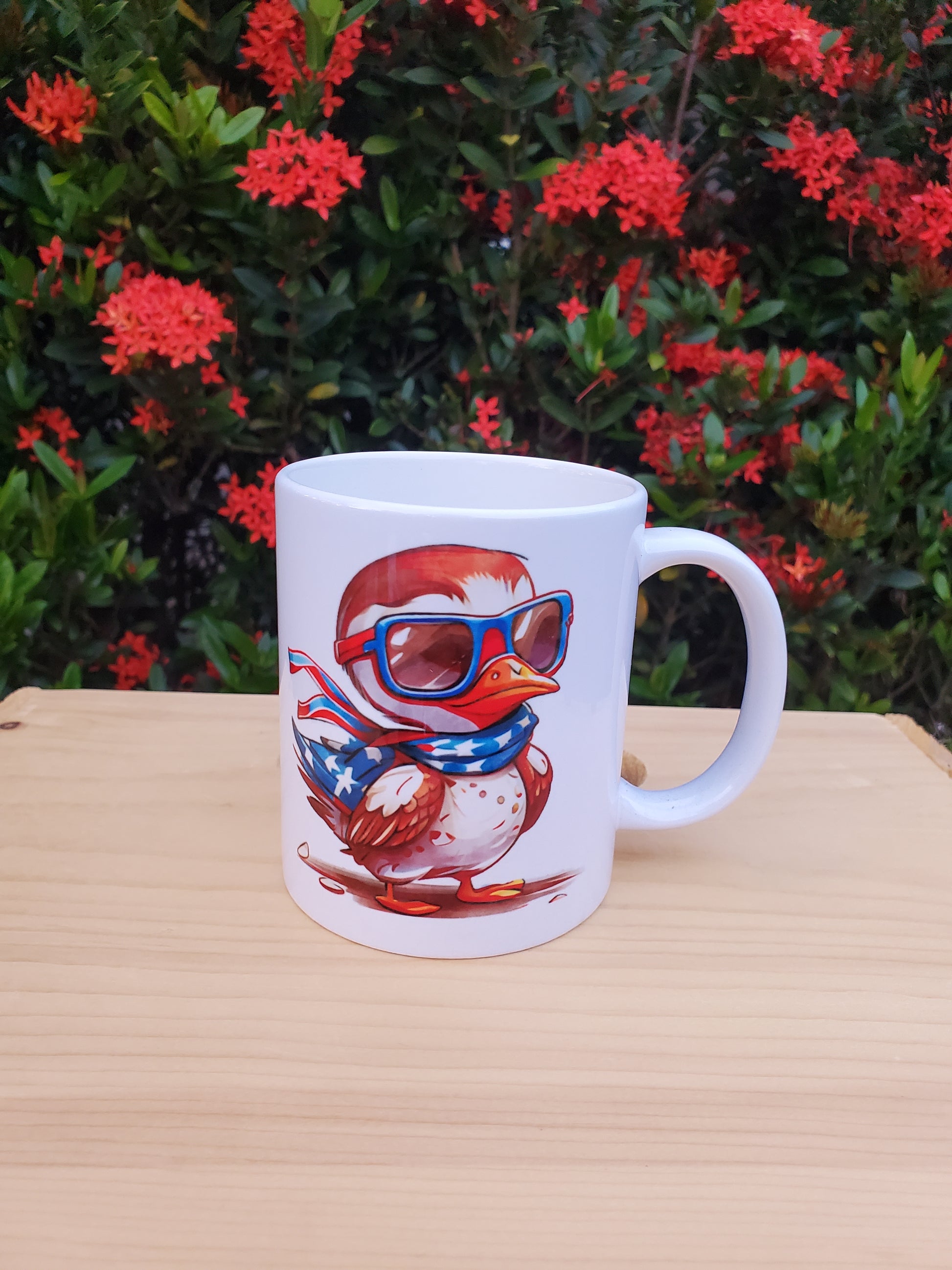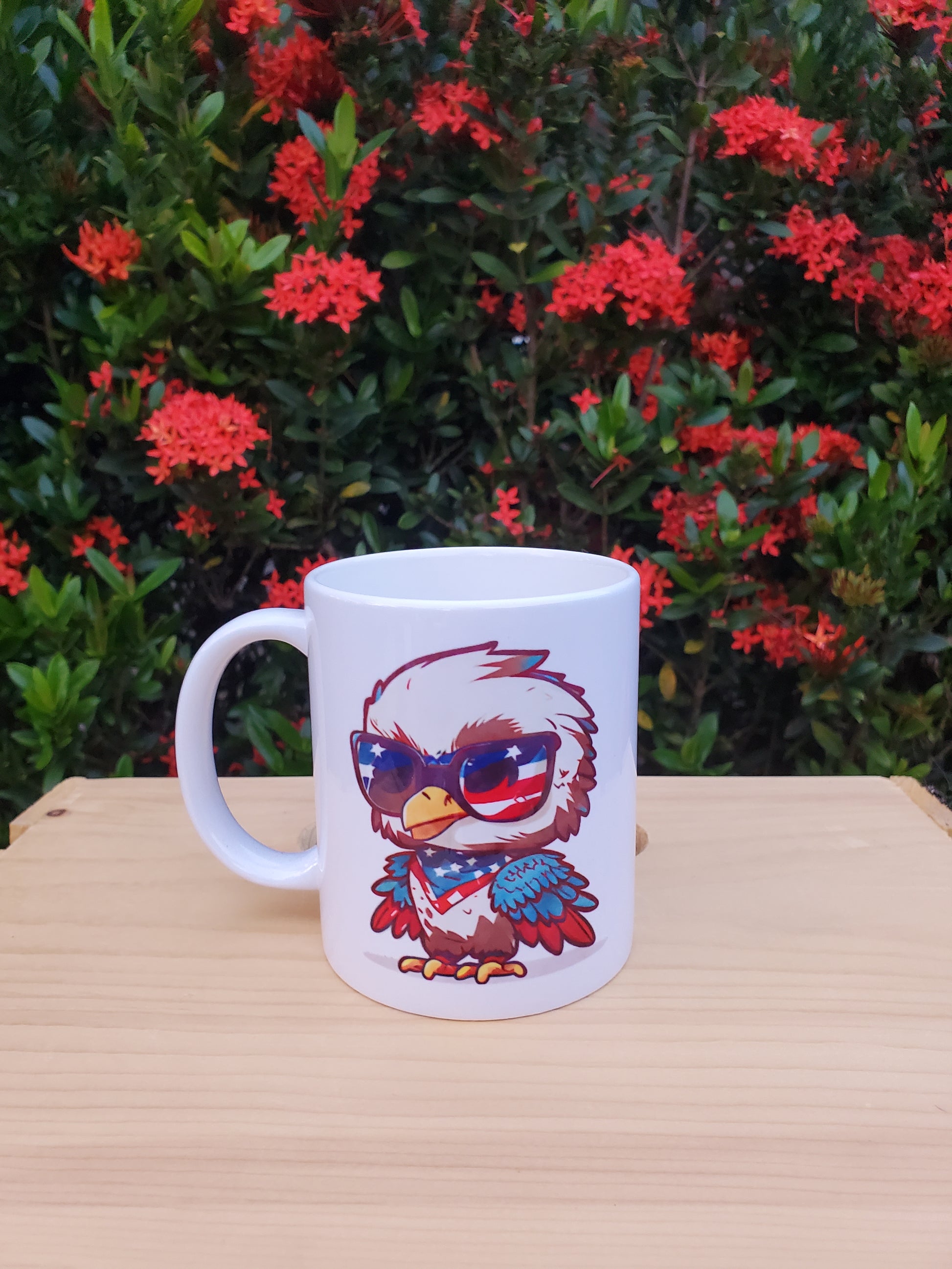 The "Patriotic USA Coffee Mug" is a proud and stylish way to show your love for the United States. Made from sturdy ceramic, this mug features iconic American symbols such as the stars and stripes of the flag, the majestic bald eagle, or other patriotic imagery.