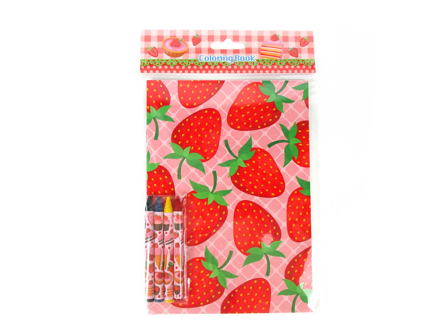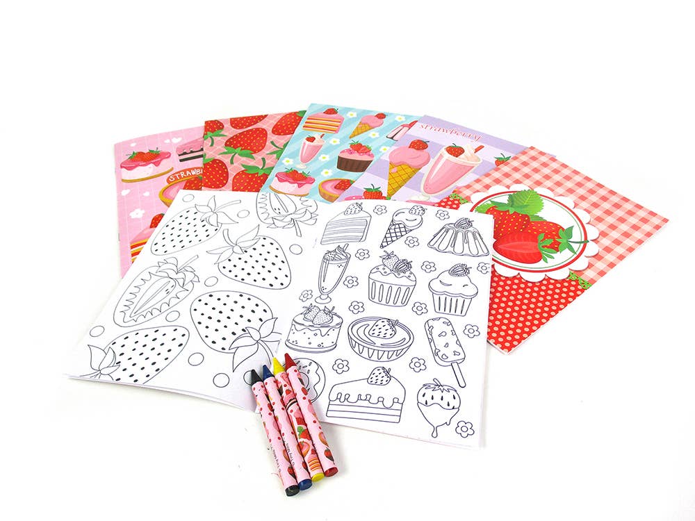 These sweet strawberry themed coloring books are perfect for this summer! Each coloring book is individually packaged with 4 crayons and has 16 pages of strawberry goodness! The coloring books are compact enough for road trips, plane trips and more. Combine these coloring books with our strawberry stamps, pencils, and treat bags for a perfect strawberry birthday party! Have these coloring books in school, at home, or in art class. Each booklet measures appx 9 inches tall, 7 inches wide. Please note, cover designs vary, but each color pages are the same.