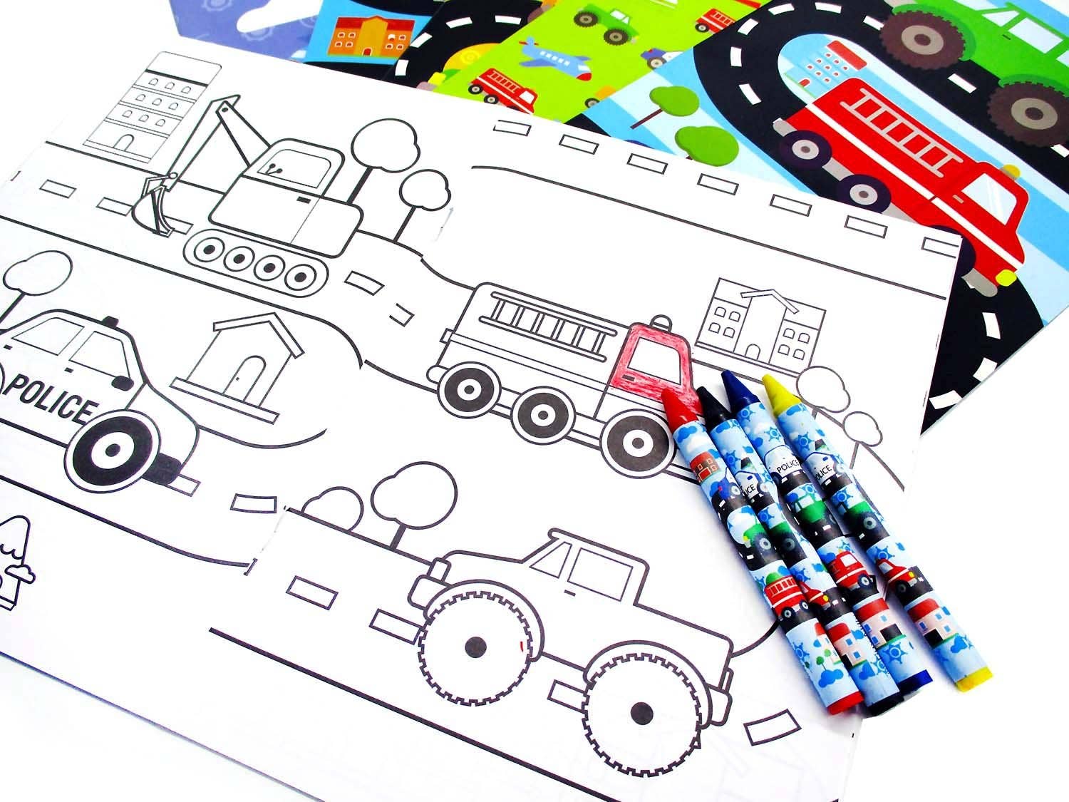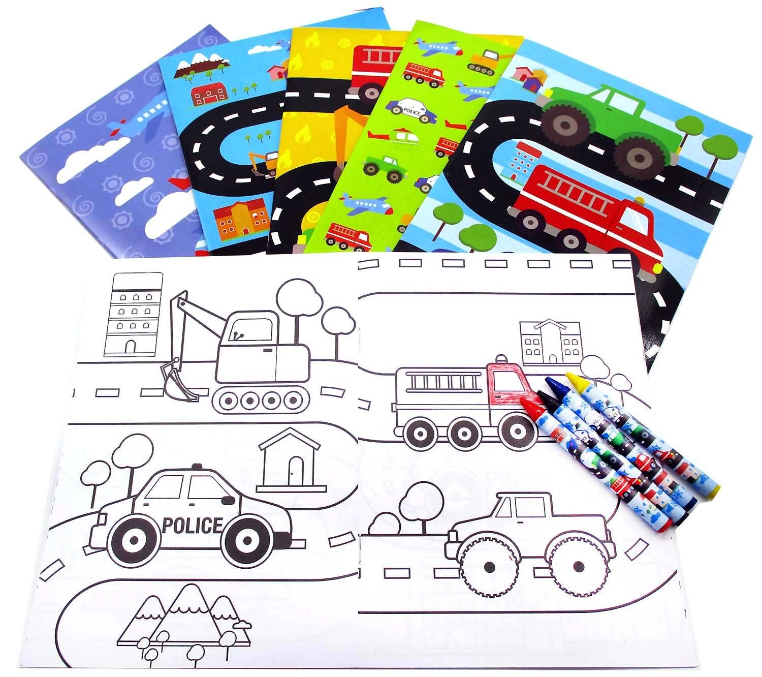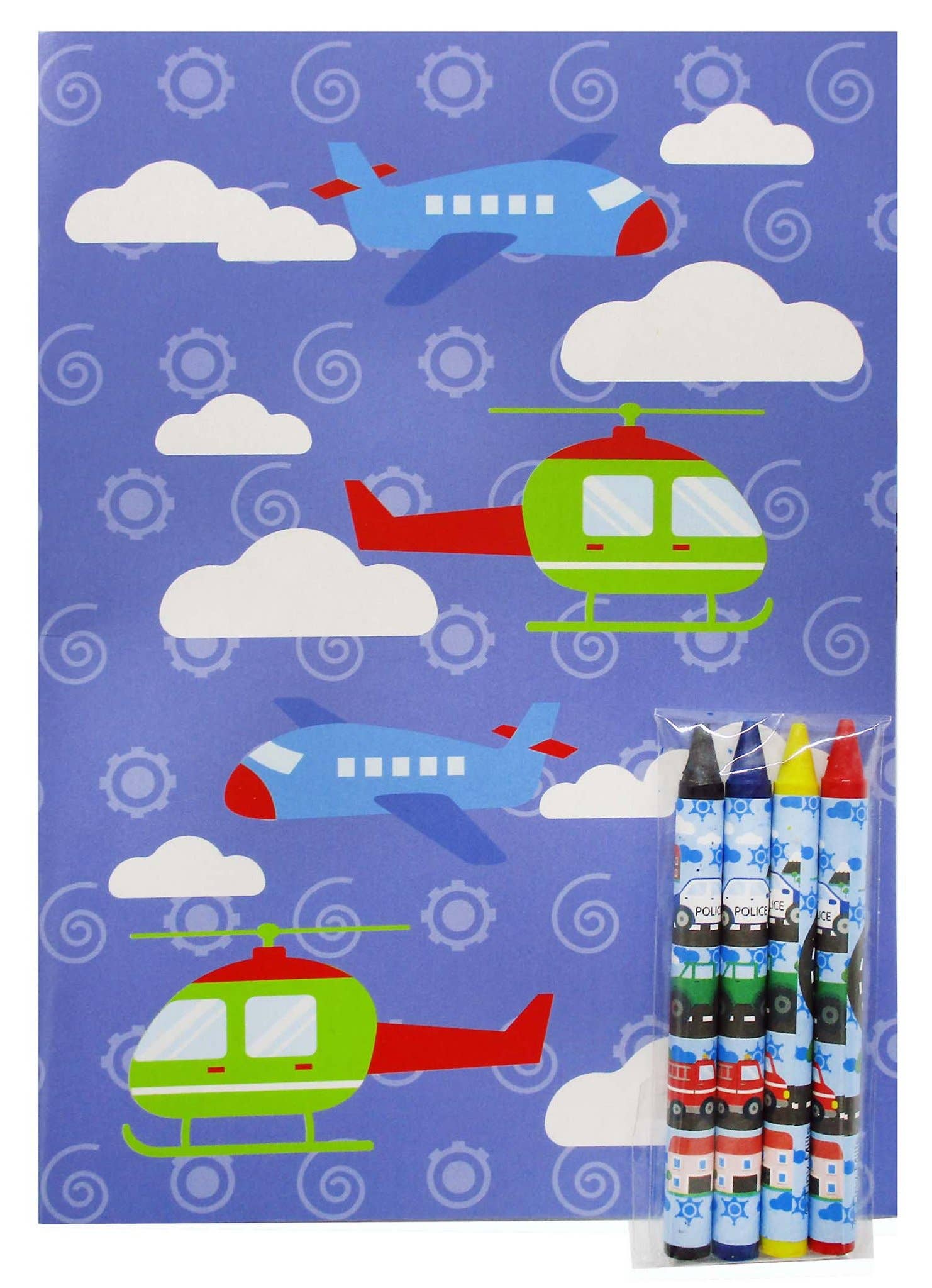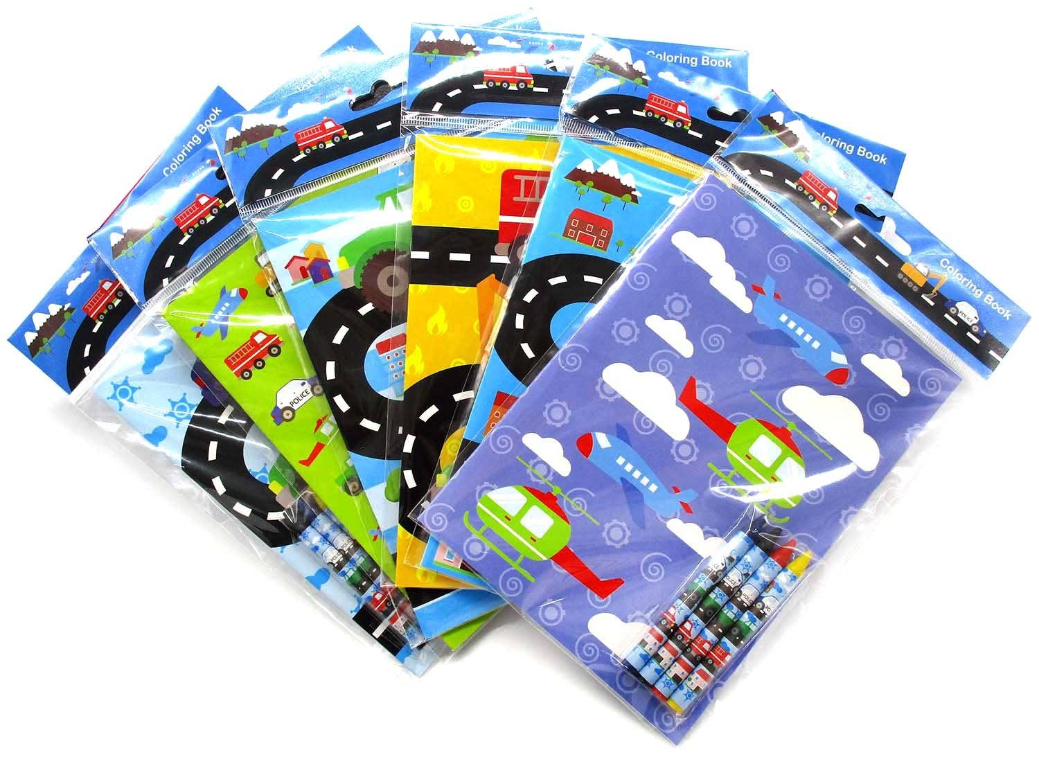 Planes, trains, and automobiles. These transportation-themed coloring book sets will make great party favors for any transportation themed celebration as well as economical but fun classroom birthday party giveaways. Each coloring book comes with 4 crayons and make great party favors or classroom rewards. Each booklet measures appx 9 inches tall, 7 inches wide. Please note, cover designs vary, but each color pages are the same.
