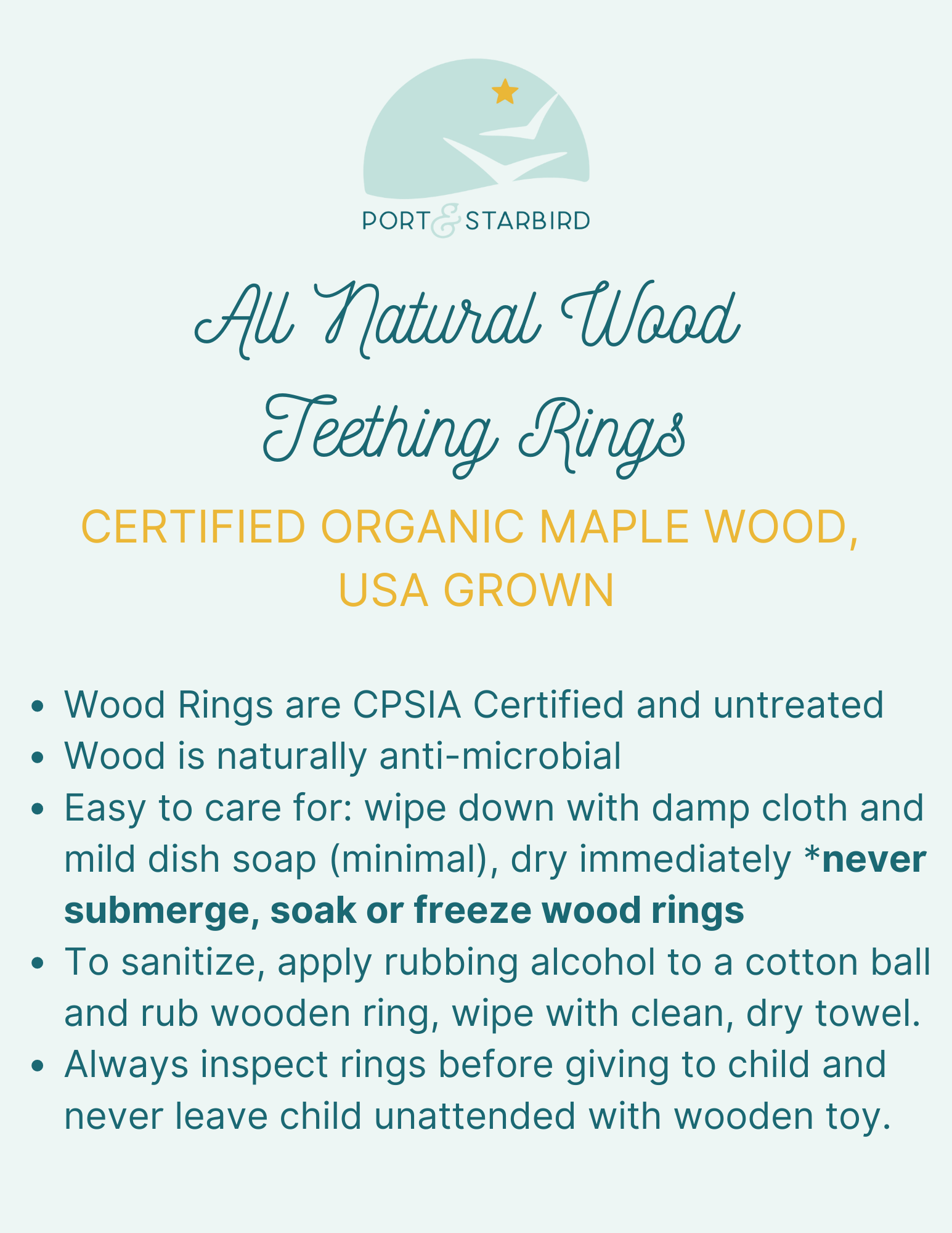 *Our teething rings have been tested and passed all of the CPSC product safety regulations: