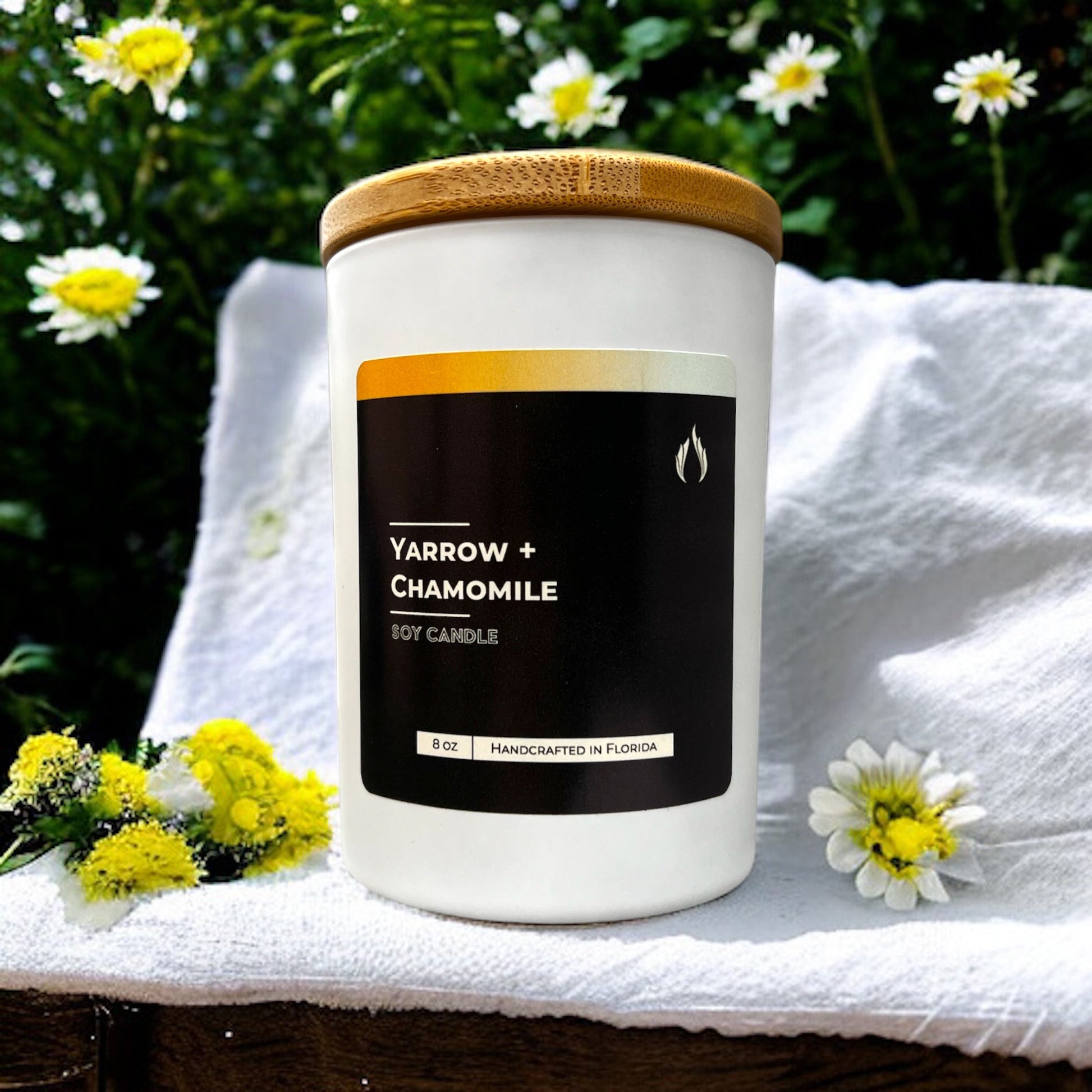 Experience the invigorating fusion of herbal yarrow buds and delicate floral notes in our Yarrow + Chamomile fragrance. This harmonious blend is complemented by subtle undertones of rosewood, amber, and sage.